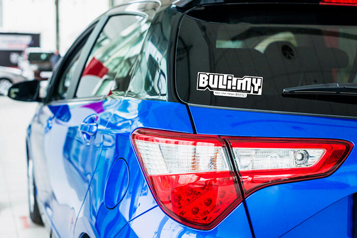 Pelekat berketahanan tinggi, boleh dilekatkan pada cermin kereta, motor, badan van, lori, bas, pintu kaca kedai, atau di premis institusi awam dan swasta.